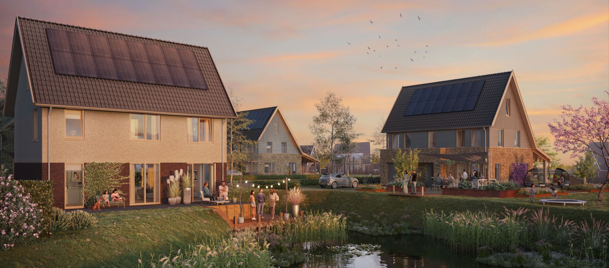 Goed nieuws: de definitieve beelden van Molenblik fase 1 zijn klaar. Na het zien van de schetsbeelden weet je hoe jouw woning er écht uit gaat zien. In Molenblik vind je dorpse rust, met veel groen, natuurlijke oevers, en uitzicht op landerijen en de markante molen aan de Brakeweg. Mét alle voorzieningen binnen handbereik. Woon jij straks in één van deze woningen met een nuchter, charmant Noord-Hollands ontwerp?